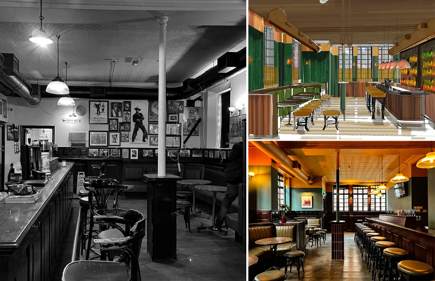 Selecting new finishes to complement the old ones helped to enrich and reiterate the charm of this old Dublin bar and lounge.